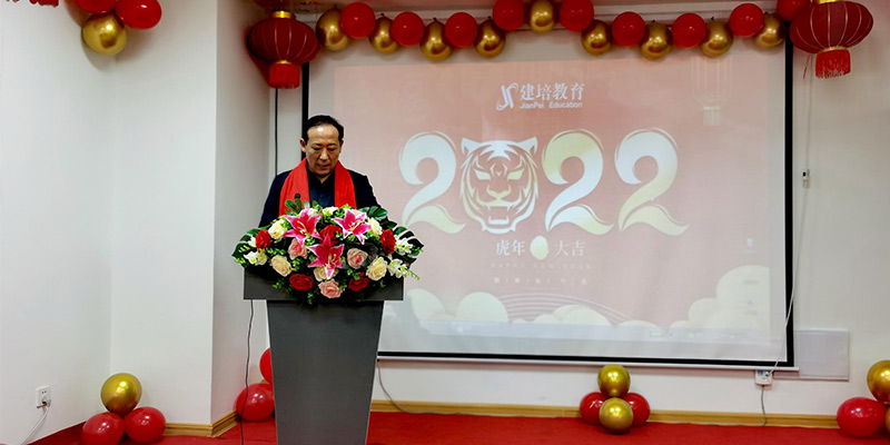 2022年1月21日,在欢乐祥和的氛围中,建培教育采取三地联动的方式,召开隆重会议,总结部署工作,并提前庆祝2022年新春佳节。蒋总在安徽合肥分会场发表了重要讲话。